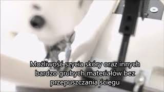 Potrójny transport Potrójny transport materiału - dolny ząbkowy, górny stopkowy, igła krocząca - umożliwia łatwe i płynne zszywanie bardzo grubych materiałów o utrudnionym przesuwie (grube skóry, tkaniny techniczne, żagle, pasy transportowe i zawiesia dźwigowe oraz wiele innych) |